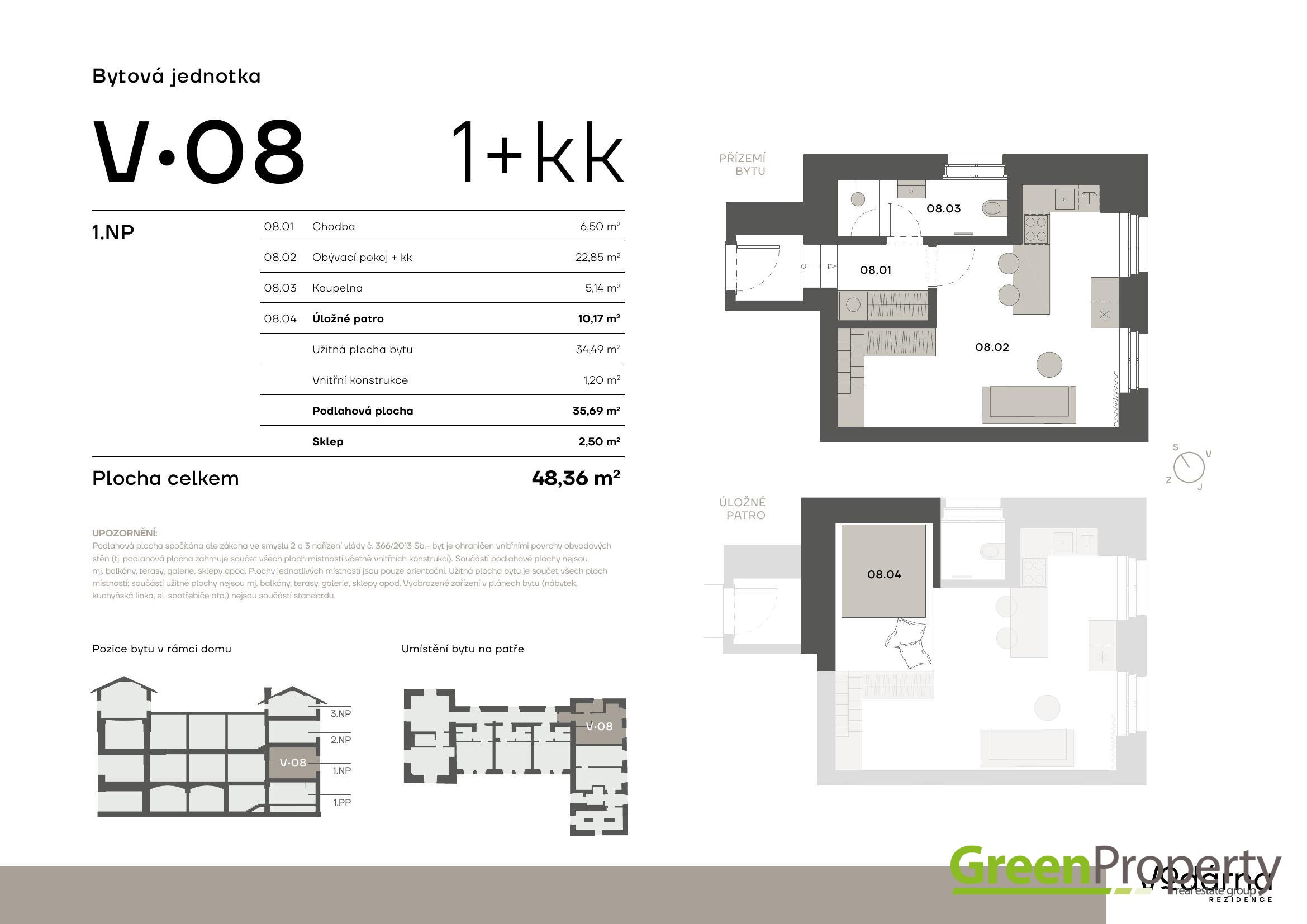 Designové 1+kk s úložným patrem v menším developerském projektu. Parkování na uzavřeném pozemku. K dispozici i jednotky 2+kk. Bytová jednotka s užitnou bytovou plochou 45,86 m2 včetně vestavného patra se nachází v 1. NP a nabízí světlý, výborně řešený prostor s vysokými stropy. Obývací pokoj s kuchyňským koutem má 22,85 m², úložné patro cca 10m2 a koupelna přes 5 m2. Úložné patro výrazně zvyšuje využitelnost bytu - ideální pro spaní, domácí pracovnu či další úložný prostor. Nabízíme 3 varianty budoucího uspořádání na přiložených vizualizacích. K bytu patří i sklepní kóje o velikosti 2.5m2 Dům stojí na začátku plánovaného pěšího corsa, které má propojit Vršovice se Zahradním Městem. V budoucnu tak vznikne komfortní pěší trasa s občanskou vybaveností, která ještě více zatraktivní tuto lokalitu. K dispozici okamžitě.