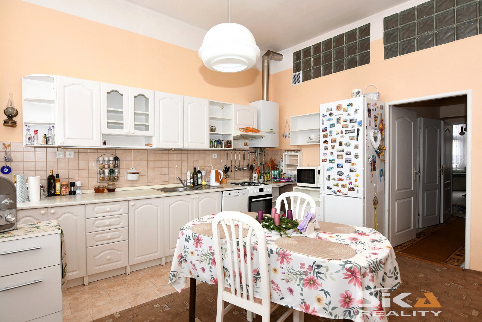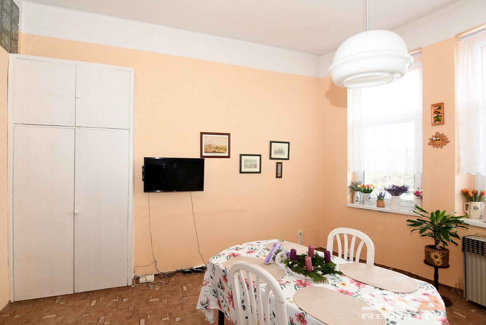 Nabízíme k prodeji prostorný cihlový byt o dispozici 2+1 s příslušenstvím a garáží o výměře 29 m², která se nachází v těsné blízkosti domu. Bytová jednotka o celkové ploše 76 m² je situována ve druhém nadzemním podlaží cihlového domu po částečné revitalizaci (nová střešní krytina, zateplený plášť a nová fasáda). V domě se nacházejí celkem čtyři bytové jednotky, které společně využívají zpevněný dvorek a upravenou zahrádku o velikosti 109 m². Dispoziční řešení bytu zahrnuje vstupní chodbu, prostornou kuchyni orientovanou na severní stranu, obývací pokoj a ložnici situované na jih a koupelnu s vanou spojenou s toaletou. Byt prošel částečnou modernizací - má plastová okna a v roce 2001 byla instalována nová kuchyňská linka, interiérové dveře a zhotoveny nové obklady v koupelně. V obytných místnostech byly zachovány původní parkety. Vytápění je zajištěno centrálně prostřednictvím vlastního plynového kotle. K bytu dále náleží zděná kolna umístěná na pozemku za domem. Měsíční náklady na bydlení činí pro dvě osoby 3 250 Kč (z toho fond oprav 1 956 Kč) + zálohy na plyn 2 285 Kč a elektrickou energii 1 090 Kč. Byt je k dispozici k okamžitému užívání. Uvedená cena nezahrnuje cenu garáže s montážní jámou, jejíž převod není podmínkou prodeje. Vzhledem k tomu, že nebyl předložen Průkaz energetické náročnosti budovy, uvádíme energetickou třídu G. Další informace Vám rádi poskytneme při osobní prohlídce nebo v naší realitní kanceláři.