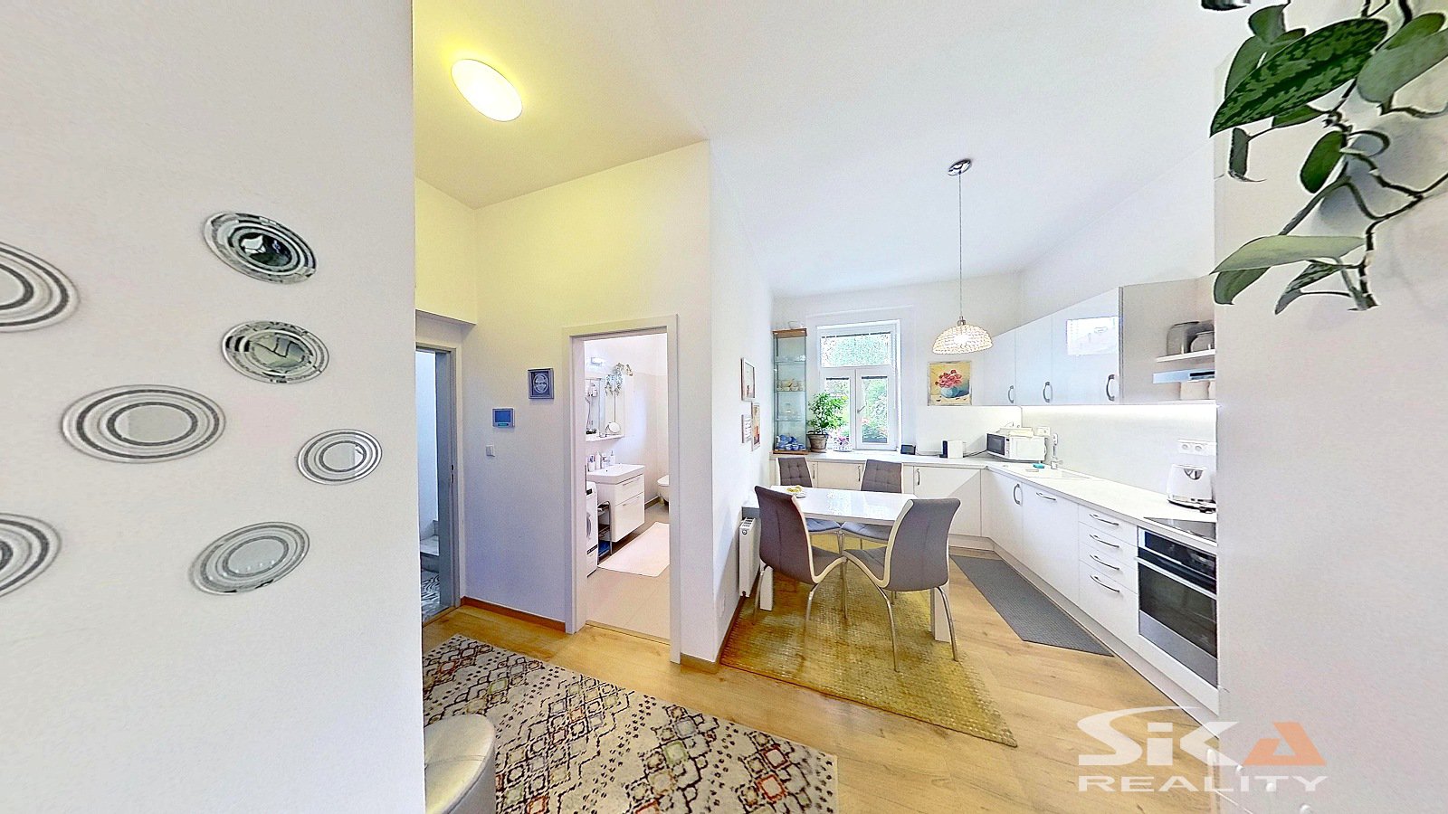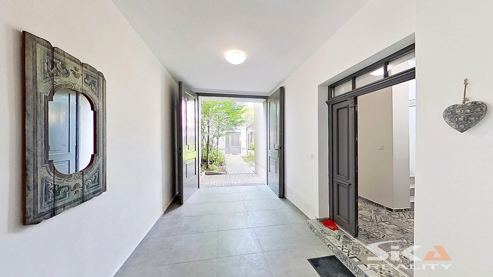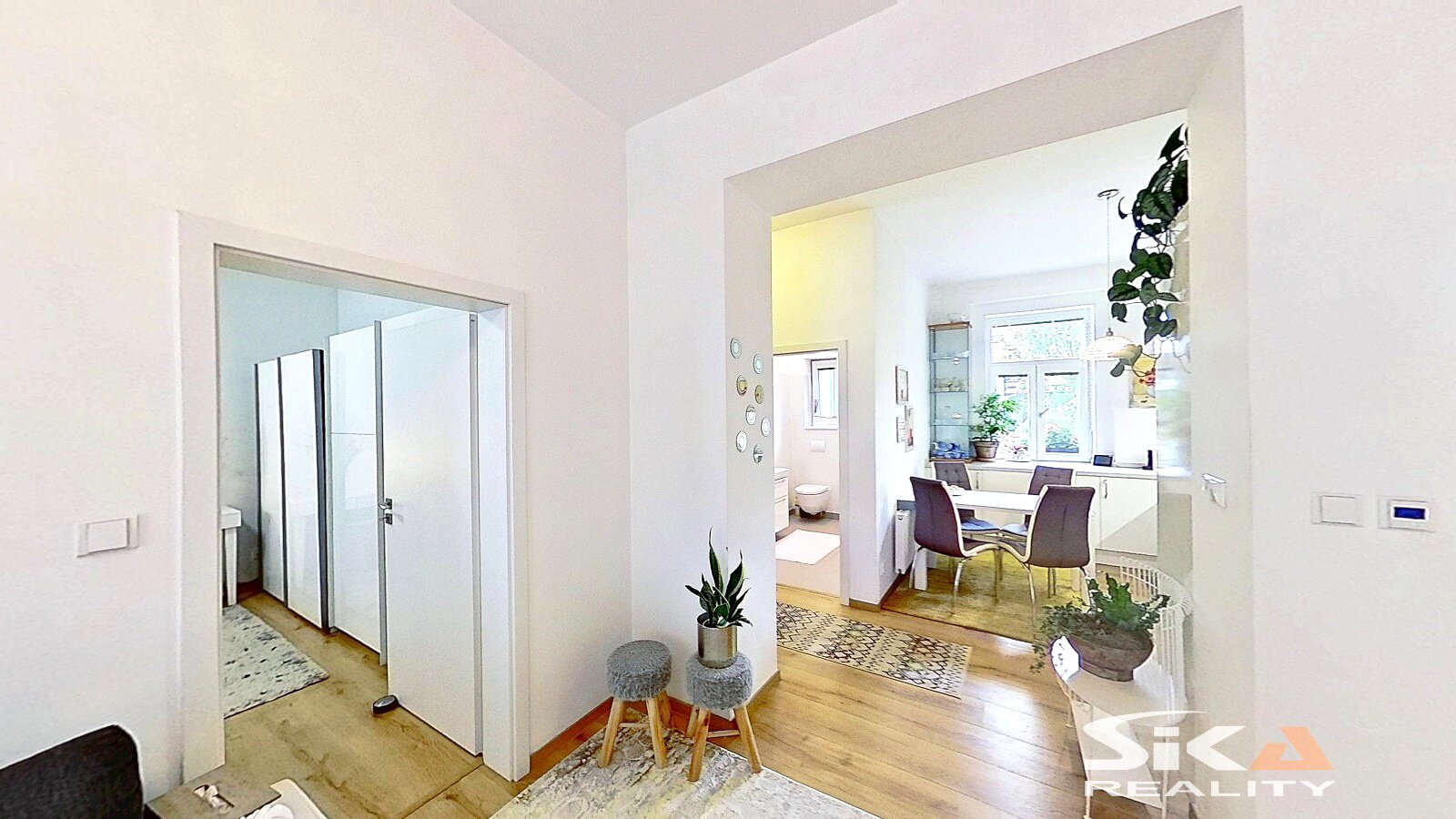 Nabízíme k prodeji bytovou jednotku v osobním vlastnictví o dispozici 2+1 s příslušenstvím a podlahové ploše 58,7 m2, která se nachází v přízemí domu s celkem třemi bytovými jednotkami, který je situovaný v širším centru města Louny, v ulici Jeronýmova. Dům, ve kterém je nabízená bytová jednotka umístěna, prošel v letech 2017 a 2018 rekonstrukcí: nový krov, střešní plášť, klempířské prvky, zateplení pláště domu v severní a západní části, nová fasáda, nová okna, nové vnitřní rozvody IS (voda, odpady, elektrické rozvody), nové topení včetně rozvodů a plynových kotlů (samostatný kombinovaný plynový kotel pro každou bytovou jednotku/každé nadzemní podlaží), nové interiéry a zařizovací předměty domu, rekonstrukce zahradního domku, vybudována pergola, vnější úpravy u domu (dlážděné chodníky, sadové úpravy zahrady)... V průjezdu domu se vyskytla zemní vlhkost, majitel podniká kroky k jejímu odstranění. Do domu se vstupuje průjezdem, který propojuje zahradu domu s ulicí Jeronýmova, z průjezdu se vstupuje do prostoru schodiště, kterým lze nastoupat do vyšších poschodí, nebo sejít do prostoru sklepa. Z hlavní podesty v 1.NP je přístupný nabízený byt, kdy vlevo od vstupní chodby je umístěna koupelna se sprchový koutem, společná s toaletou, rovně z chodby vstoupíme do kuchyně (s okny do dvora), napravo od kuchyně jsou umístěny obývací pokoj a ložnice (s okny do uliční části). Společně s vlastníky dalších bytů lze užívat sklepní prostory, které sestávají ze dvou místností a jsou zde umístěny vodoměry a plynoměry pro jednotlivé byty a dále zahradu za domem přístupnou průjezdem. Zahrada je osázena okrasnými keři, v severo-západním rohu je umístěna krytá pergola s posezením, v protějším rohu se nachází zrekonstruovaný zahradní domek s rozvody elektrické energie a vody. Zahrádka je prosluněná a nabízí dostatek prostoru pro relaxaci. Obec Louny poskytuje kompletní občanskou vybavenost a díky dálnici D7 také výborné dopravní napojení na Prahu či Chomutov. Tato nabídka představuje jedinečnou příležitost klidného a luxusního bydlení v širší části města s výbornou dostupností a možností užívání vlastní zahrádky. Další informace rádi poskytneme při osobní prohlídce.