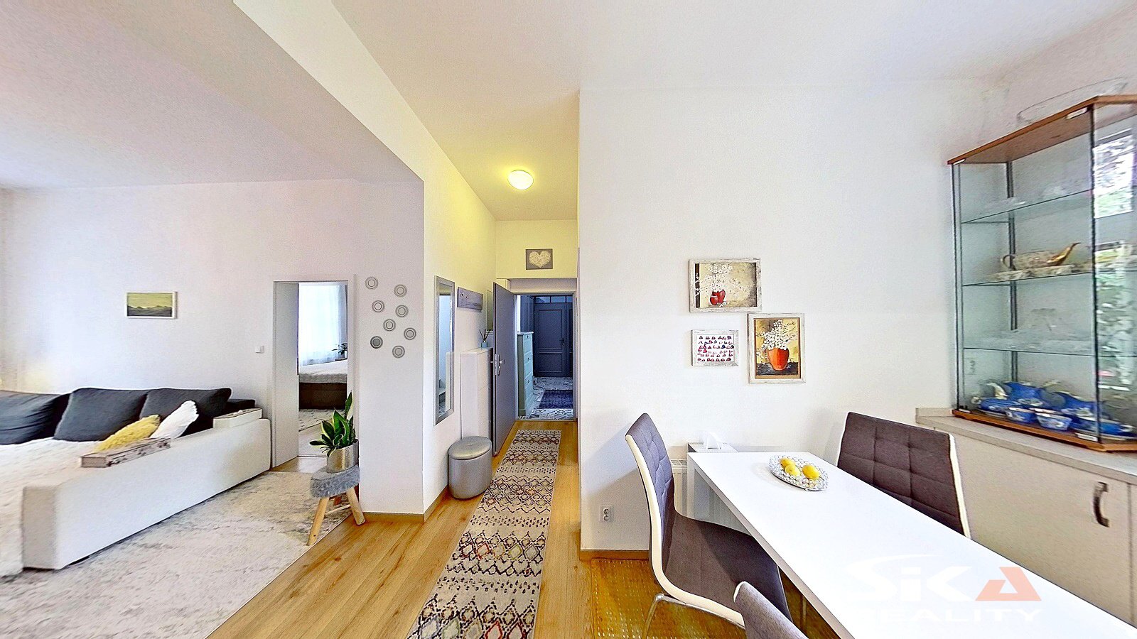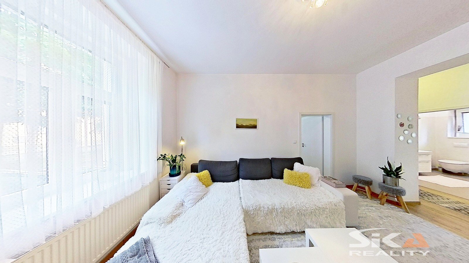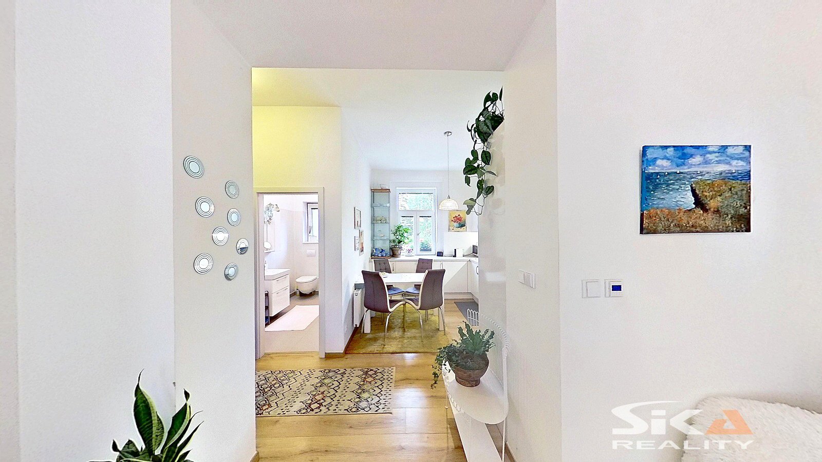 Nabízíme k prodeji bytovou jednotku v osobním vlastnictví o dispozici 2+1 s příslušenstvím a podlahové ploše 58,7 m2, která se nachází v přízemí domu s celkem třemi bytovými jednotkami, který je situovaný v širším centru města Louny, v ulici Jeronýmova. Dům, ve kterém je nabízená bytová jednotka umístěna, prošel v letech 2017 a 2018 rekonstrukcí: nový krov, střešní plášť, klempířské prvky, zateplení pláště domu v severní a západní části, nová fasáda, nová okna, nové vnitřní rozvody IS (voda, odpady, elektrické rozvody), nové topení včetně rozvodů a plynových kotlů (samostatný kombinovaný plynový kotel pro každou bytovou jednotku/každé nadzemní podlaží), nové interiéry a zařizovací předměty domu, rekonstrukce zahradního domku, vybudována pergola, vnější úpravy u domu (dlážděné chodníky, sadové úpravy zahrady)... V průjezdu domu se vyskytla zemní vlhkost, majitel podniká kroky k jejímu odstranění. Do domu se vstupuje průjezdem, který propojuje zahradu domu s ulicí Jeronýmova, z průjezdu se vstupuje do prostoru schodiště, kterým lze nastoupat do vyšších poschodí, nebo sejít do prostoru sklepa. Z hlavní podesty v 1.NP je přístupný nabízený byt, kdy vlevo od vstupní chodby je umístěna koupelna se sprchový koutem, společná s toaletou, rovně z chodby vstoupíme do kuchyně (s okny do dvora), napravo od kuchyně jsou umístěny obývací pokoj a ložnice (s okny do uliční části). Společně s vlastníky dalších bytů lze užívat sklepní prostory, které sestávají ze dvou místností a jsou zde umístěny vodoměry a plynoměry pro jednotlivé byty a dále zahradu za domem přístupnou průjezdem. Zahrada je osázena okrasnými keři, v severo-západním rohu je umístěna krytá pergola s posezením, v protějším rohu se nachází zrekonstruovaný zahradní domek s rozvody elektrické energie a vody. Zahrádka je prosluněná a nabízí dostatek prostoru pro relaxaci. Obec Louny poskytuje kompletní občanskou vybavenost a díky dálnici D7 také výborné dopravní napojení na Prahu či Chomutov. Tato nabídka představuje jedinečnou příležitost klidného a luxusního bydlení v širší části města s výbornou dostupností a možností užívání vlastní zahrádky. Další informace rádi poskytneme při osobní prohlídce.