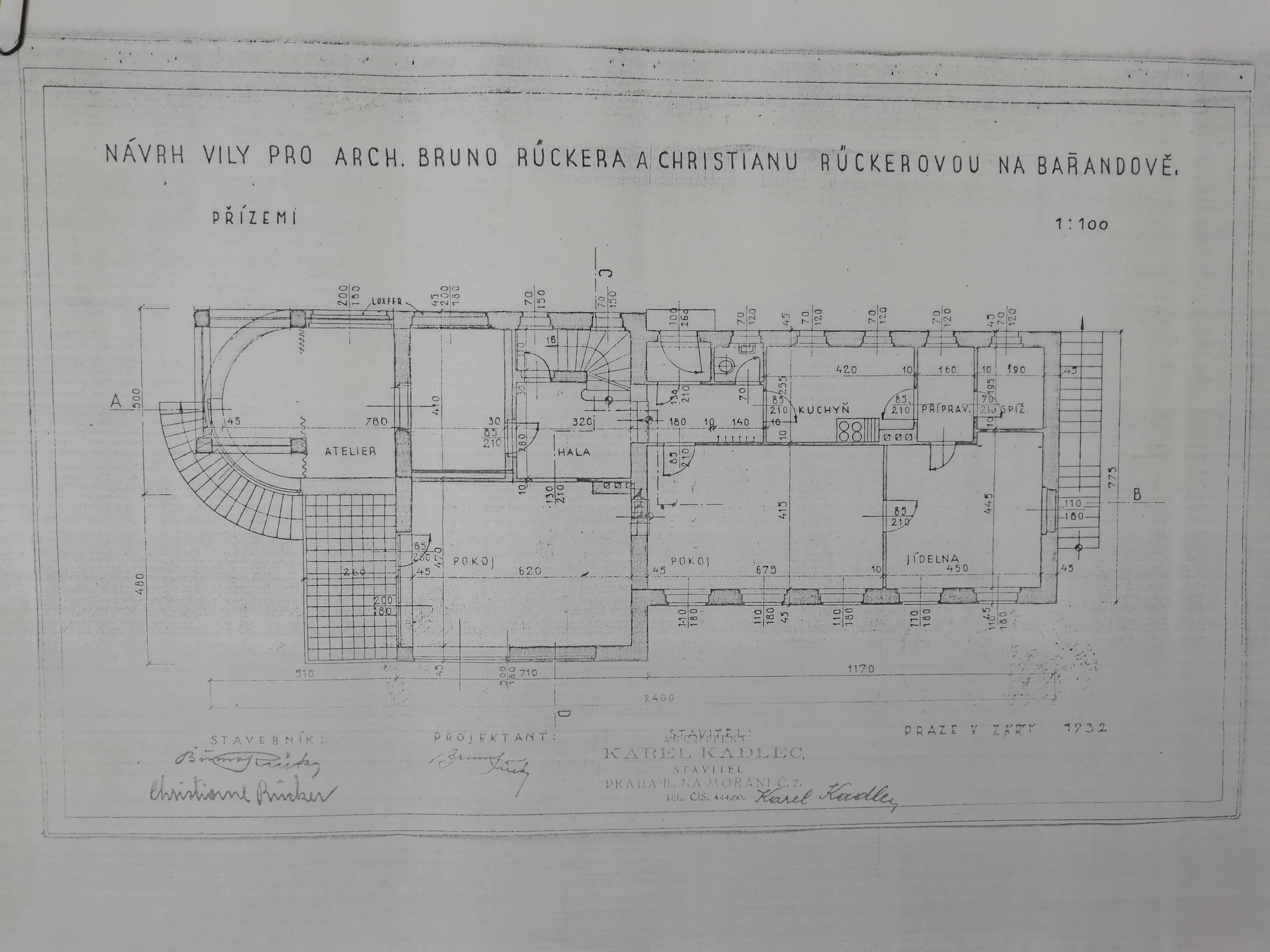 Dovolujeme si Vám nabídnout unikátní stylovou prvorepublikovou rodinnou vilu v sousedství Barrandovských teras s původním zachovalým interiérem a nádherným výhledem do údolí Vltavy a panorama Prahy, která byla postavena v roce 1932, dle návrhu architekta Bruno Rückera. Vila je umístěna v projektu zahradního města(1928-1939), který byl realizován, dle záměru Ing. Václava M.Havla, jež se inspiroval podobným projektem při své návštěvě Spojených států. Stavby v tomto projektu jsou především funkcionalistického charakteru nebo ve stylu hollywoodských haciend. V domě jsou zachovalé veškeré původní dobové prvky, jako jsou pískovcové zárubně, dveře, parketové podlahy, parapety, klenuté stropy, vitrážová okna, okenní kované mříže, venkovní omítka, vestavěné skříně a knihovny, kryty radiátorů, kazetový strop, nebo dřevěné schodiště. Ojedinělá stavba s bohatou historií, která byla využívána diplomatickým servisem na překrásném místě. Vstupní patro vily tvoří předsíňová hala se vstupem na schodiště, velký obývací pokoj s rohovým oknem navazující na jídelnu a pracovnu se vstupem na terasu, prostorná kuchyň, spíž, toaleta a dva další pokoje. V patře se nachází 2 ložnice a prostorná koupelna se vstupem do nevyužitého půdního prostoru o výměře 70m2, který lze přestavět na další obytnou místnost s terasou a výhledem na celou Prahu. V částečně zapuštěném suterénu vily byl v minulosti byt správce spolu s prostory technického vybavení domu jako kotelna, prádelna, toaleta, vinný sklep, komory, koupelna apod., tyto prostory jsou v současnosti ve stavu započaté rekonstrukce, kde byly provedeny bourací práce a je nutné její dokončení. Celkový stav nemovitosti je dobrý a umožňuje okamžité užívání, ale určitě vyžaduje dokončení rekonstrukce suterénu vily. Nemovitost s jihovýchodní orientací nabízí nádherný výhled na panorama Prahy a údolí Vltavy, téměř ze všech prostor domu, dvou teras a pozemku. Pozemek je svažitý terasovitý s pohodlným schodištěm, zahradním kamenným jezírkem, původní opěrnou kamennou zdí a několika dalšími kamennými zídkami. Přístup k nemovitosti je jak z ulice Skalní, tak ze spodní hranice pozemku při ulici Barrandovská, kde je vybudována zděná garáž pro dvě vozidla. Je zde také možnost vybudování venkovního stání pro 2-3 vozidla u horní hranice pozemku při ulici Skalní(vizualizace ve fotogalerii). Celková plocha pozemku je 1529m2 z toho zastavěná plocha 339m2, užitné plochy domu - suterén- 115m2,1.NP-133m2, 2.NP-54, terasa 35m2, půda 70m2 + garáž 40m2. K nemovitosti je k dispozici původní projektová dokumentace, projekt na přestavbu suterénu včetně v minulosti vydaného staveb. povolení(2014) a projekt na vybudování venkovního krytého stání pro 3 vozidla při ulici Barrandovská. Nemovitost je určena pro zájemce, který ocení dobrou adresu ve výjimečně vilové čtvrti a ojedinělou architekturu budovy, která má své vnitřní kouzlo. Pro více informací navštivte naše stránky, nebo kontaktujte makléře. Plánky domu, 3D prohlídku, video z dronu a další foto zašlu na vyžádání. Doporučujeme.