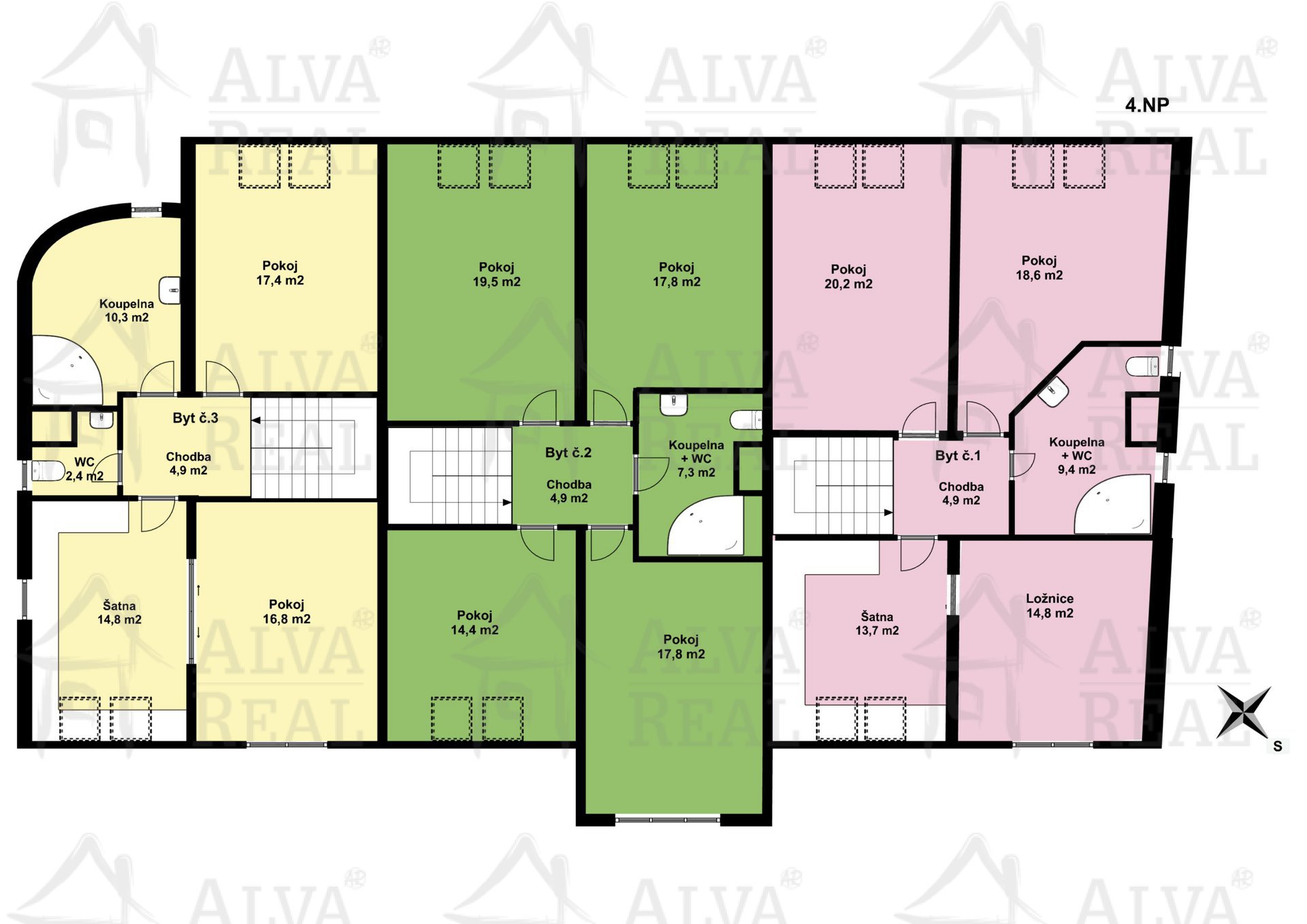 Nabízíme investiční příležitost, sídlo Vaší firmy - prodej pětipodlažní polyfunkční nemovitostmi s kancelářskými prostory, byty a garážemi v Brně-Řečkovicích, na ulici Maříkova. Výborná dostupnost do centra Brna, ul. Hradecká, zastávka MHD přímo před domem. Celková plocha parcel 974 m², z toho zastavěná plocha 300 m². 1.PP: 4x samostatná garáž, 1x dvojgaráž, sklepy k bytům, chodby. Podlahová plocha 193,7 m². 1.NP: 2x kancelářské prostory (140,5 m²; 91 m²). Podlahová plocha 231,5 m². 2.NP: 4x kancelářské prostory (69,4 m²; 45,5 m²; 62,1 m²; 52,1 m²). Podlahová plocha 229,1 m². 3. a 4.NP: 3 podkrovní mezonetové byty (5+kk - 177,1 m², 5+kk - 136,1 m², 4+kk - 167,5 m²) o celkové podlahové ploše 480,7 m². Podlahová plocha kancelářských prostor je 460,6 m², bytů 480,7 m², a celková užitná plocha budovy činí 1.241,9 m². Administrativní budova má čtyři nadzemní a jedno podzemní podlaží a byla postavena před jedenácti lety. Technický stav je velmi dobrý. V objektu je šest kanceláří, tři mezonetové byty, čtyři samostatné garáže, jedna dvojgaráž, výtah, příslušenství k bytům, sklepy a skladové prostory pro kanceláře. Kanceláře jsou vybaveny sociálním zařízením, vlastním vytápěním, datovými zásuvkami (optický kabel), kuchyňkou a vlastními měřidly energií. K dispozici parkování pro dalších 15 vozidel na pozemku před a za budovou. Dům napojen na veškeré inženýrské sítě. Vytápění a ohřev teplé vody v kancelářích a bytech zajištěno plynovými kondenzačními kotli. Budova je postavena z cihel, fasáda je zateplená a okna jsou plastová. Vypracován průkaz energetické náročnosti budovy - energetická třída C. Budova je nabízena k prodeji jak formou převodu 100% podílu ve společnosti, která vlastní a spravuje pouze tento objekt, tak i prodejem samostatné nemovitosti včetně příslušenství. K dispozici projektová dokumentace, výpočet výnosové hodnoty pozemků. Pro více informací, ekonomiku, výnosové ocenění nemovitosti neváhejte kontaktovat makléře.
