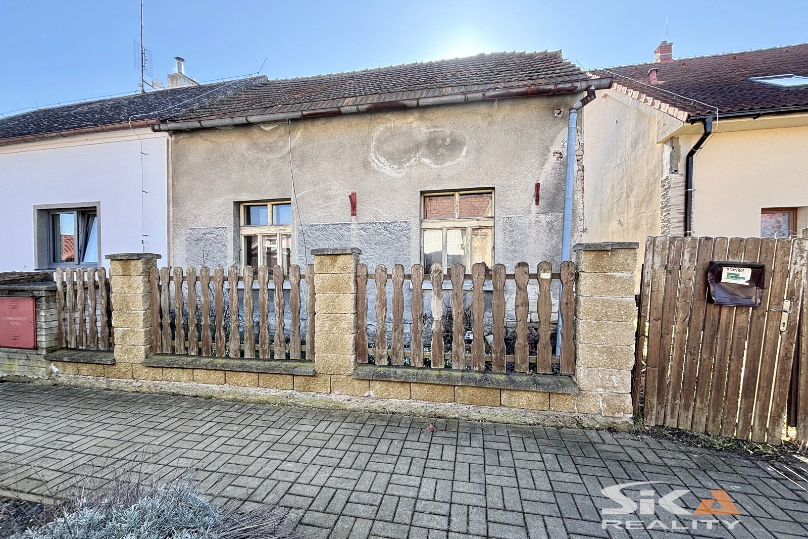 Nabízíme k prodeji rodinný dům se zahradou situovaný na klidném místě v obci Dobroměřice. Předmětem prodeje je částečně podsklepená přízemní stavba o zastavěné ploše přibližně 55 m², která je umístěna na rovinatém pozemku o celkové zapsané výměře 620 m². Pozemek má obdélníkový tvar o rozměrech cca 10 x 60 metrů. Zastavěná plocha domu činí cca 55 m2. Nemovitost je ve stavu určeném ke kompletní rekonstrukci. Na hlavní hmotu domu navazují další přístavby, které nejsou evidovány v katastru nemovitostí. Tyto části se nacházejí v havarijním technickém stavu a jsou určeny spíše k odstranění, čímž se otevírá prostor pro budoucí rozšíření hlavní stavby dle vlastních představ. Napojení na IS: zavedena elektřina a voda z veřejného vodovodu, plynová přípojka na hranici pozemku. Podrobnější informace Vám rádi poskytneme při osobní prohlídce nebo v RK. Vzhledem ke skutečnosti, že nemáme k dispozici PENB, uvádíme třídu energetické náročnosti G.