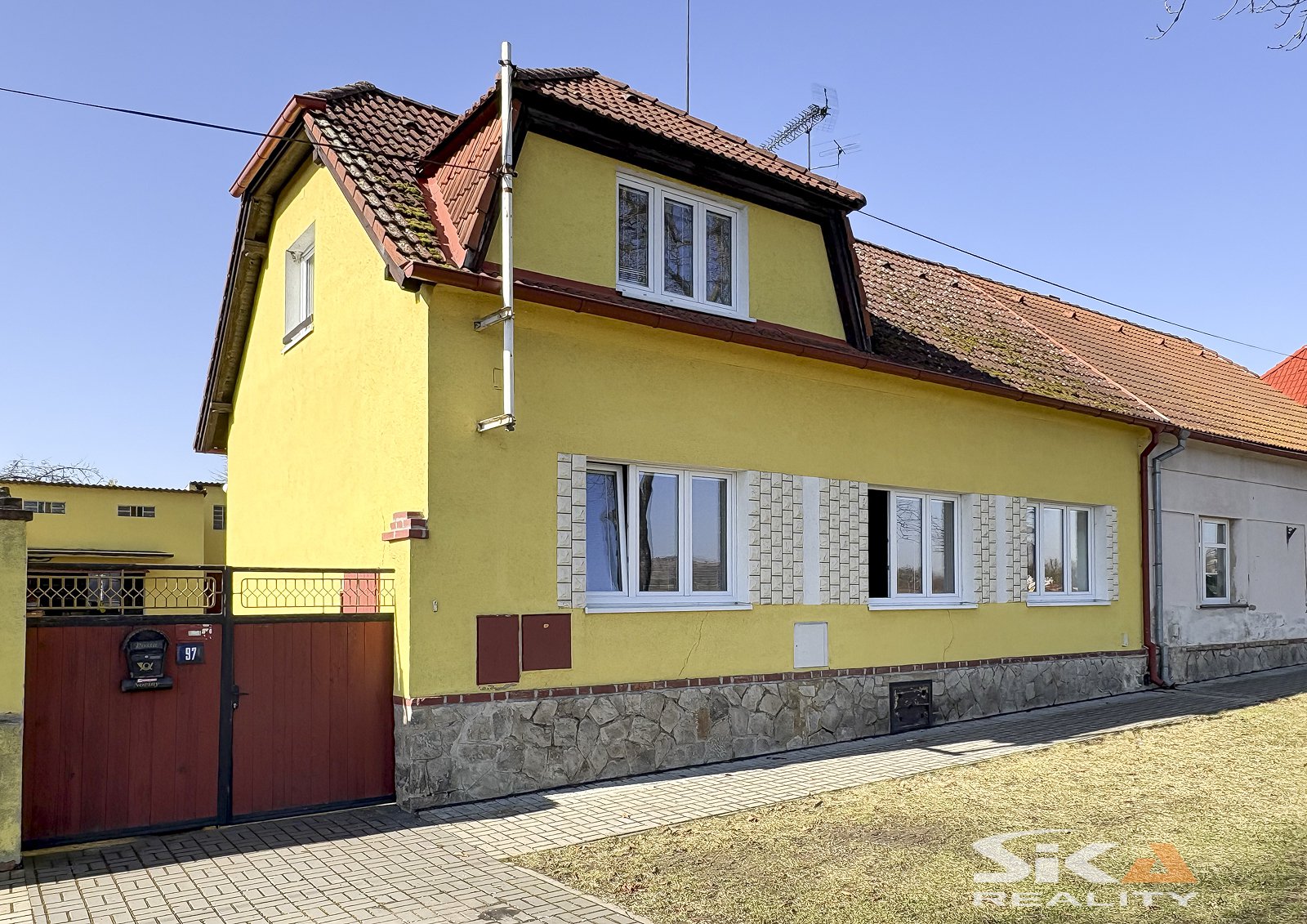Nabízíme k prodeji polo řadový rodinný dům se zahradou o celkové výměře 817 m² v klidné okrajové části obce Břvany. Dům má jedno nadzemní podlaží, částečně upravené podkroví a je z poloviny podsklepený. Dispoziční řešení obytné části 3+1: vstup přes verandu, koupelna s WC, předsíň, kuchyně, obývací pokoj průchozí do ložnice, podkroví s pokojem a půdním prostorem. V suterénu se nachází technické a skladovací zázemí. Nemovitost prošla částečnými rekonstrukcemi (střecha, elektroinstalace, koupelna, podlahy). Vytápění je ústřední (kotel na tuhá paliva + elektrický kotel), ohřev vody bojlerem. Dům je napojen na vodovod, kanalizaci, elektřinu i plyn, k dispozici je také společná studna s užitkovou vodou. Na pozemku se nachází garáž (cca 26 m2), hospodářská stavba s letní kuchyní (26 m2) a přístřešek. Zahrada je rovinatá, oplocená, s ovocnými stromy a zapuštěným bazénem. Základní občanská vybavenost v obci, kompletní služby v nedalekých Lounech. Další informace Vám rádi sdělíme při osobní prohlídce nebo v RK. Vzhledem ke skutečnosti, že PENB se vyhotovuje, uvádíme třídu energetické náročnosti G.