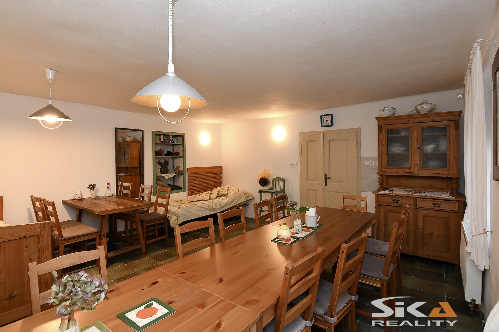 Nabízíme Vám k prodeji výjimečný, plně funkční penzion s kavárnou, terasami, svatební stodolou, víceúčelovou stavbou a upravenou zahradou, který se nachází v obci Peruc - pouhých 40 km severozápadním směrem od Prahy a cca 12 km od budoucí dálnice D7. Objekt je umístěný v severní okrajové části obce, v bezprostřední blízkosti známého Oldřichova dubu, který získal v roce 2025 ocenění Strom roku a obklopují ho dva nově zrekonstruované rybníky. Pozemek o celkové výměře 1.893 m2 je částečně zastavěn rodinným domem a stodolami, celý objekt je kompletně zrekonstruovaný v letech 2012-2014. Dispoziční řešení bylo navrženo tak, aby objekt umožňoval více způsobů využití - rodinné bydlení, penzion, gastro provoz nebo pořádání akcí. V současné době se využívá jako rodinný penzion s kapacitou 11 lůžek a zavedenou kavárnou. Vedlejší stavby jsou vhodné pro menší svatby, rodinné oslavy, firemní setkání či kulturní akce (divadla, trhy, výstavy aj.) Všechny budovy jsou ve velmi dobrém technickém stavu, pravidelně pečlivě udržované. Objekt je napojen na veškeré IS, voda z veřejného řádu je rozvedena i po zahradě, odpady svedeny do tlakové kanalizace, elektrická energie 240/400 V (jističe 3 x 16 A), vytápění celého objektu zajištuje plynový kotel a ohřev vody bojlery. Internet připojený na původní pevnou telefonní linku, v současné době probíhá jednání o připojení na optický kabel. Peruc nabízí kompletní občanskou vybavenost - školu, školku, poštu, obchody, lékaře, zubaře, kino, koupaliště a zároveň možnosti sportovního i kulturního vyžití. Obec je obklopena lesy a představuje ideální místo jak pro bydlení, tak pro turistiku i rekreaci. Podrobnější informace Vám rádi sdělíme při osobní prohlídce nebo v RK. Vzhledem ke skutečnosti, že PENB se právě vyhotovuje, uvádíme třídu energetické náročnosti G.
