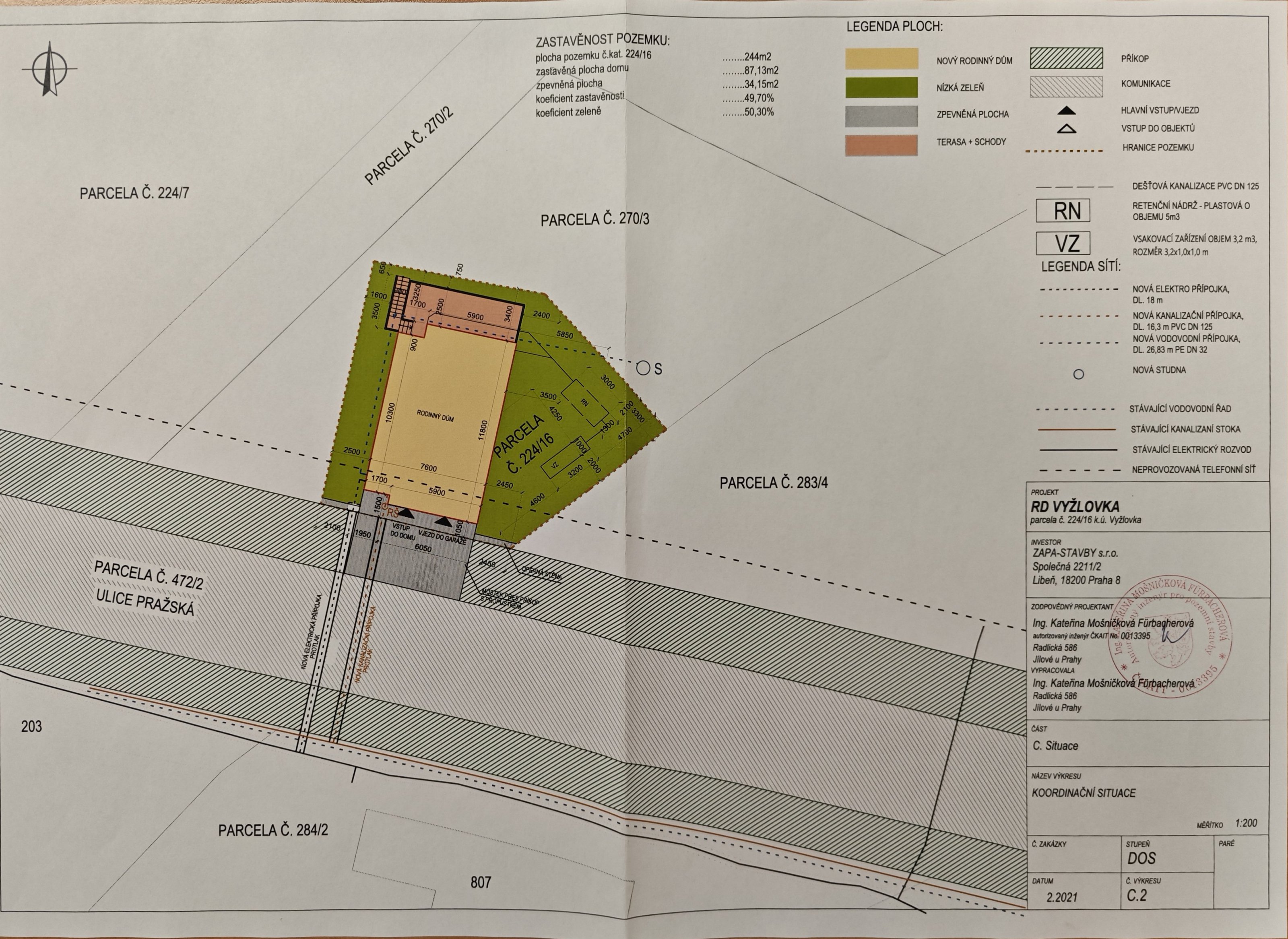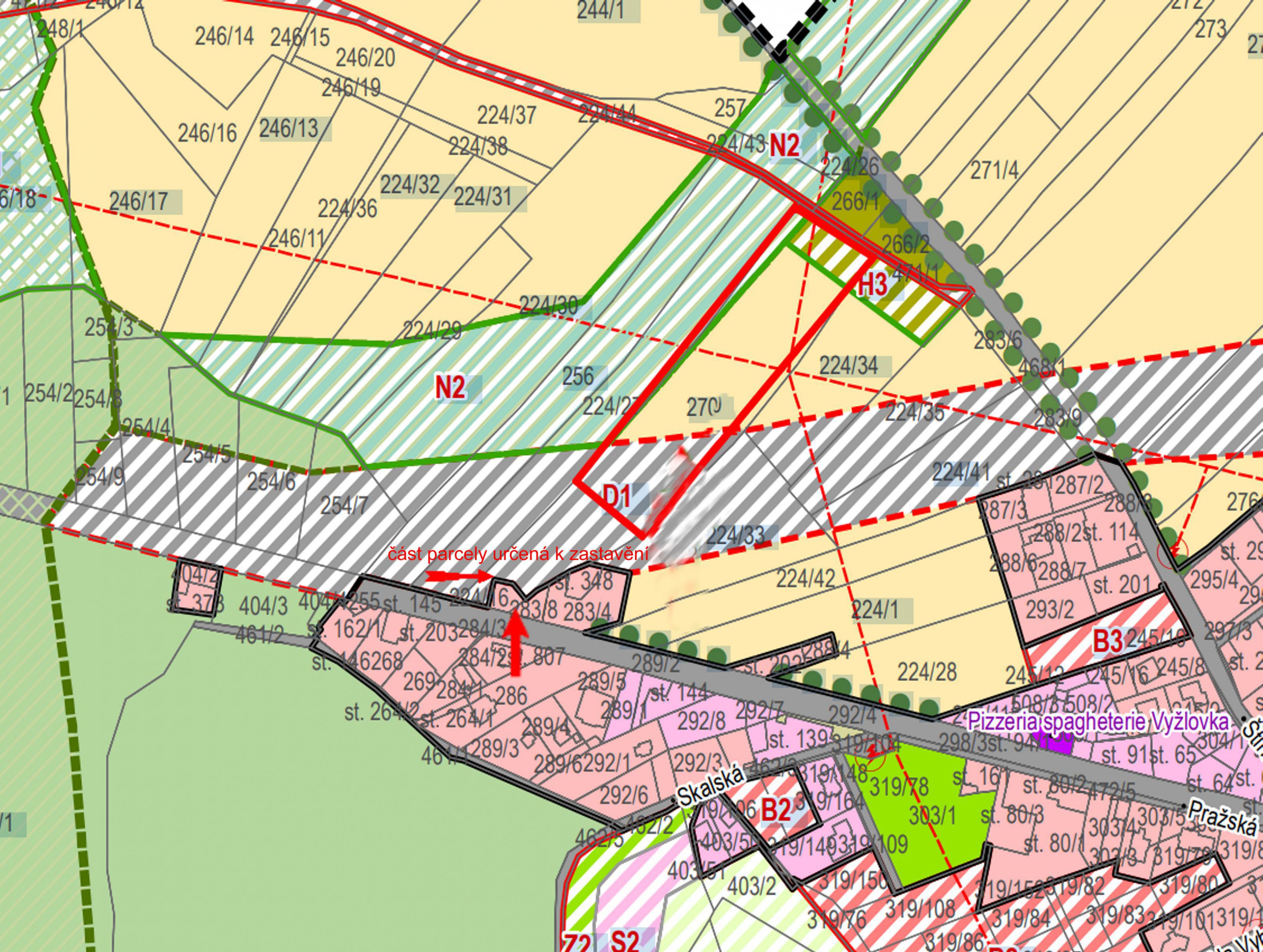 Nabízíme k prodeji stavební pozemek vhodný pro výstavbu rodinného domu. Pozemek o celkové výměře 1707 m2, se skládá ze 3 samostatných parcel(plánek ve fotogalerii), dle územního plánu je určeno k zastavění 244m2, ostatní možno využít jako zahradu, parkování apod.. Rovinatý pozemek lichoběžníkového tvaruje je umístěn při ulici Pražská v intravilánu obce Jevany- Vyžlovka, bezproblémový přístup se sjezdem z hlavní silnice( povolení sjezdu včetně projektové dokumentace), v přiléhající komunikaci jsou umístěny páteřní sítě s možností připojení(kanalizace, voda) , el. je již zavedena + povolení na studnu. K dispozici studie a projektová dokumentace na umístění RD( ve fotogalerii). Možnost přikoupení dalšího navazujícího pozemku, nebo jeho části, podmínky dle dohody. Další podrobné informace poskytne makléř zakázky. Doporučujeme