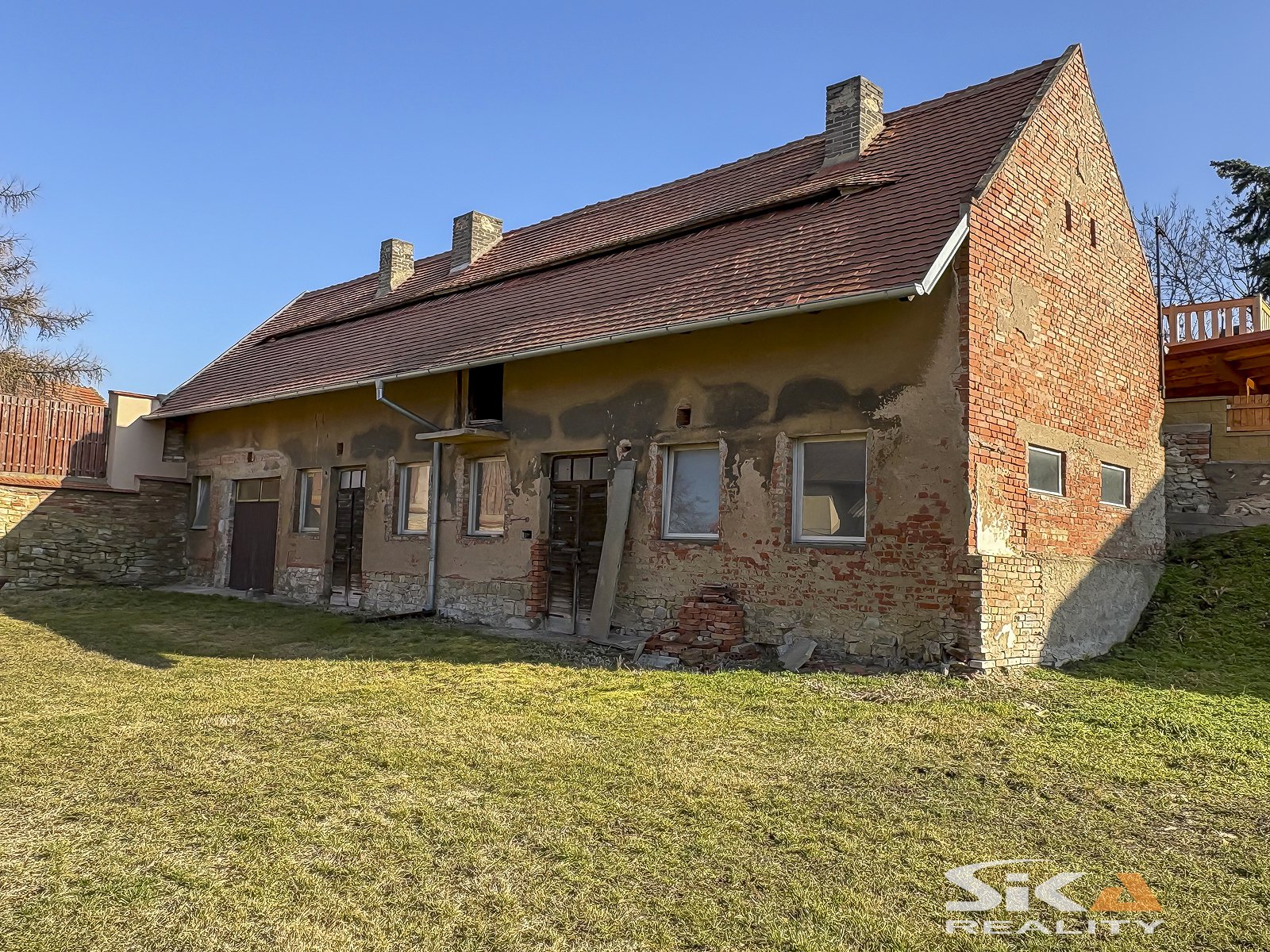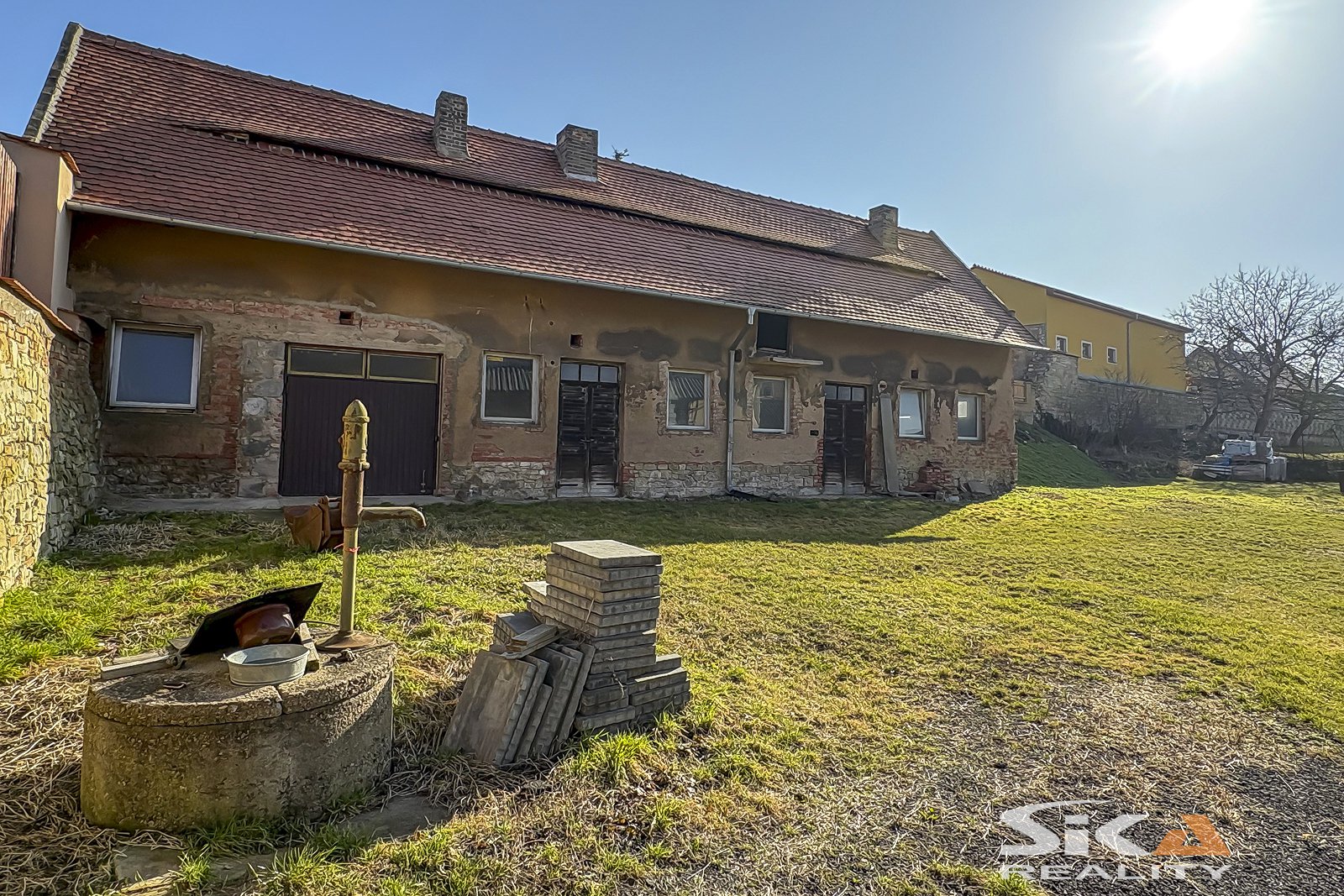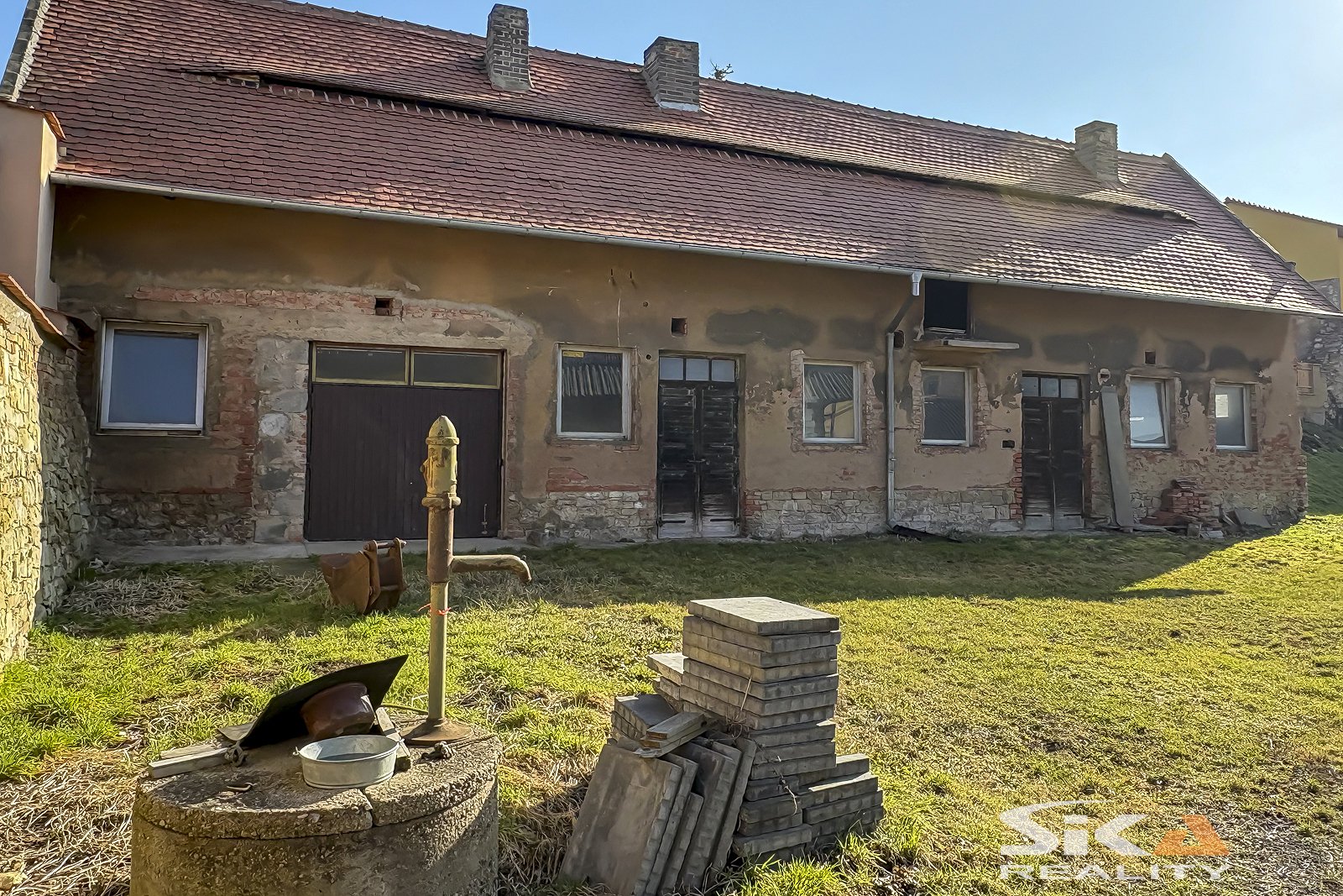 Nabízíme k prodeji stodolu s projektem přestavby a vydaným stavebním povolením v centru obce Zeměchy. Samostatně stojící zděná stavba bez přiděleného čísla popisného/ evidenčního má obdélníkový půdorys se zastavěnou plochou 136 m². Objekt je nepodsklepený, s jedním nadzemním podlažím a půdním prostorem pod sedlovou střechou. Stáří stavby je přibližně 90 let. Pozemek o celkové výměře 849 m² je ze tří stran oplocen a je opatřen vjezdovými vraty. Na pozemku se nachází kopaná studna s užitkovou vodou (bez novodobého povolení dle aktuální legislativy). Inženýrské sítě: elektřina 240/400 V, plynová přípojka ve štítové zdi objektu, možnost napojení na veřejný vodovod a kanalizaci. Součástí kupní ceny je kompletní projektová dokumentace v hodnotě 220 000 Kč, včetně vydaného stavebního povolení z roku 2023 na stavební úpravy stodoly se změnou užívání na autodílnu. Nemovitost se nachází v intravilánu obce, v lokalitě určené k venkovskému bydlení. Územní plán zároveň připouští možnost výstavby rodinného domu, což budoucímu majiteli nabízí širší spektrum využití - od podnikatelského záměru až po realizaci vlastního bydlení. Více informací Vám rádi poskytneme při osobní prohlídce.