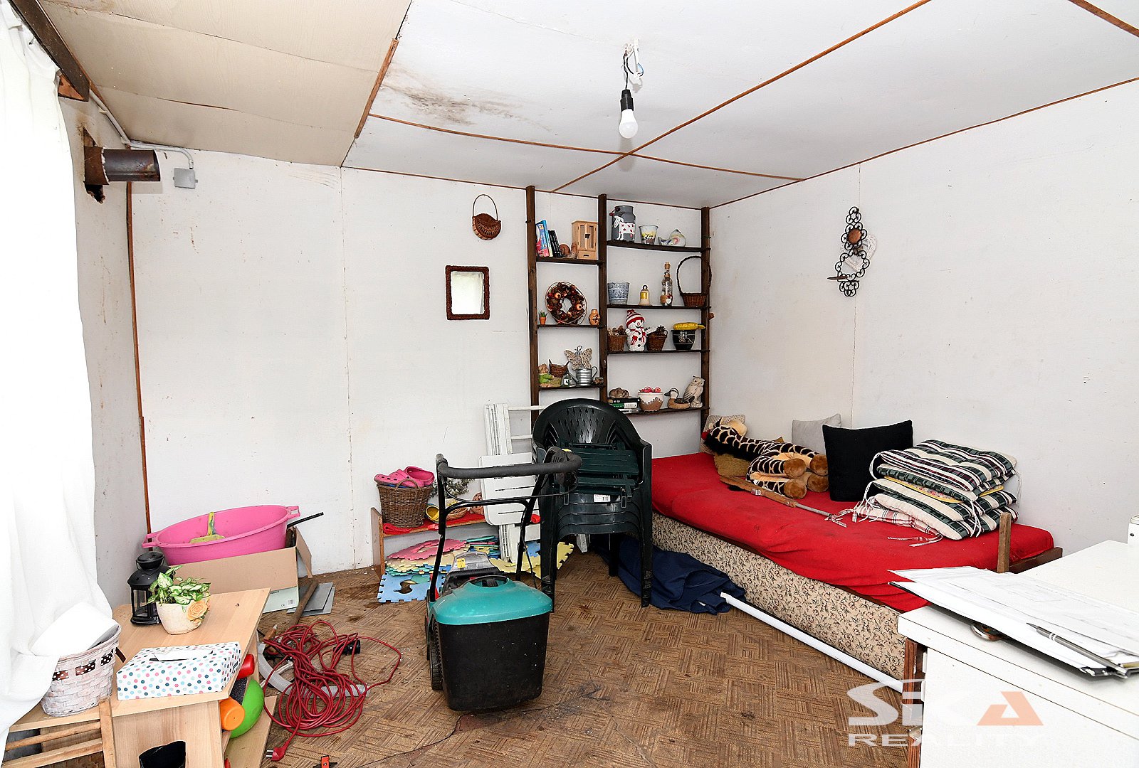 Nabízíme k prodeji zahradu s dřevěnou chatou nacházející se v lokalitě "Na Losech" za železničním mostem v Lounech. Pozemek má celkovou zapsanou výměru 456 m2, má přibližně obdélníkový půdorys a je z části oplocen (pouze venkovní oplocení, vnitřní oplocení mezi zahradami v kolonii není realizováno). Chata je vystavěna z fošen na pilířích z cementových cihel, v průčelí se nachází veranda, v zadní části navazuje na chatu kůlna na nářadí. Do chaty je zavedena elektrická energie s podružným elektroměrem (přípojku elektrické energie má zřízenu vlastník sousedícího pozemku, který spotřebu rozpočítává). Zahrada má rozvod užitkové vody, která je čerpána z řeky prostřednictví čerpadla umístěného na sousední zahradě (náklady jsou rozpočítávány mezi všechny odběratele). Stavba chaty byla historicky povolena, ale není zapsána v katastru nemovitostí, majitel podniká kroky k zápisu chaty do katastru. Na pozemku je vzrostlá plodící třešeň, švestka, okrasné dřeviny a keře. Dle povodňové mapy povodí Ohře spadá pozemek do zóny pětileté vody, pozemek je dále zasažen ochranným pásmem železnice. Další info poskytneme rádi v RK.