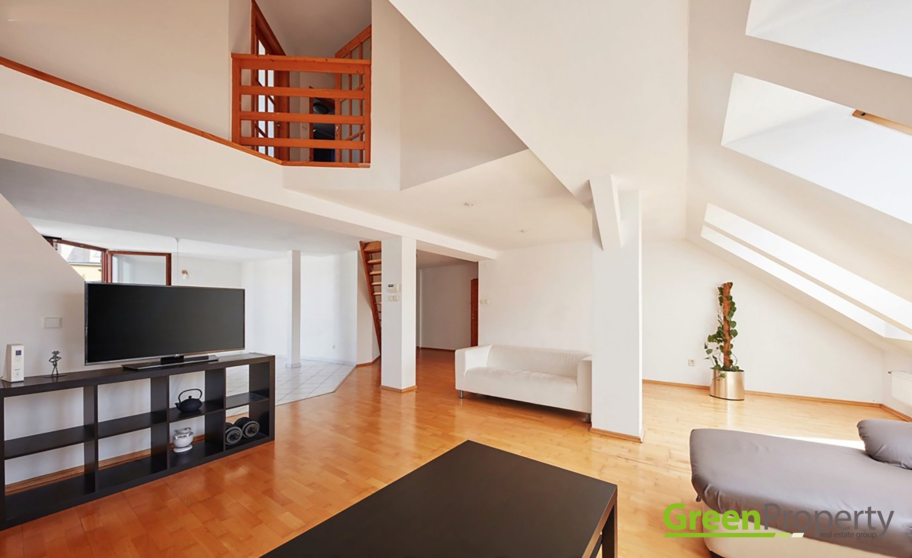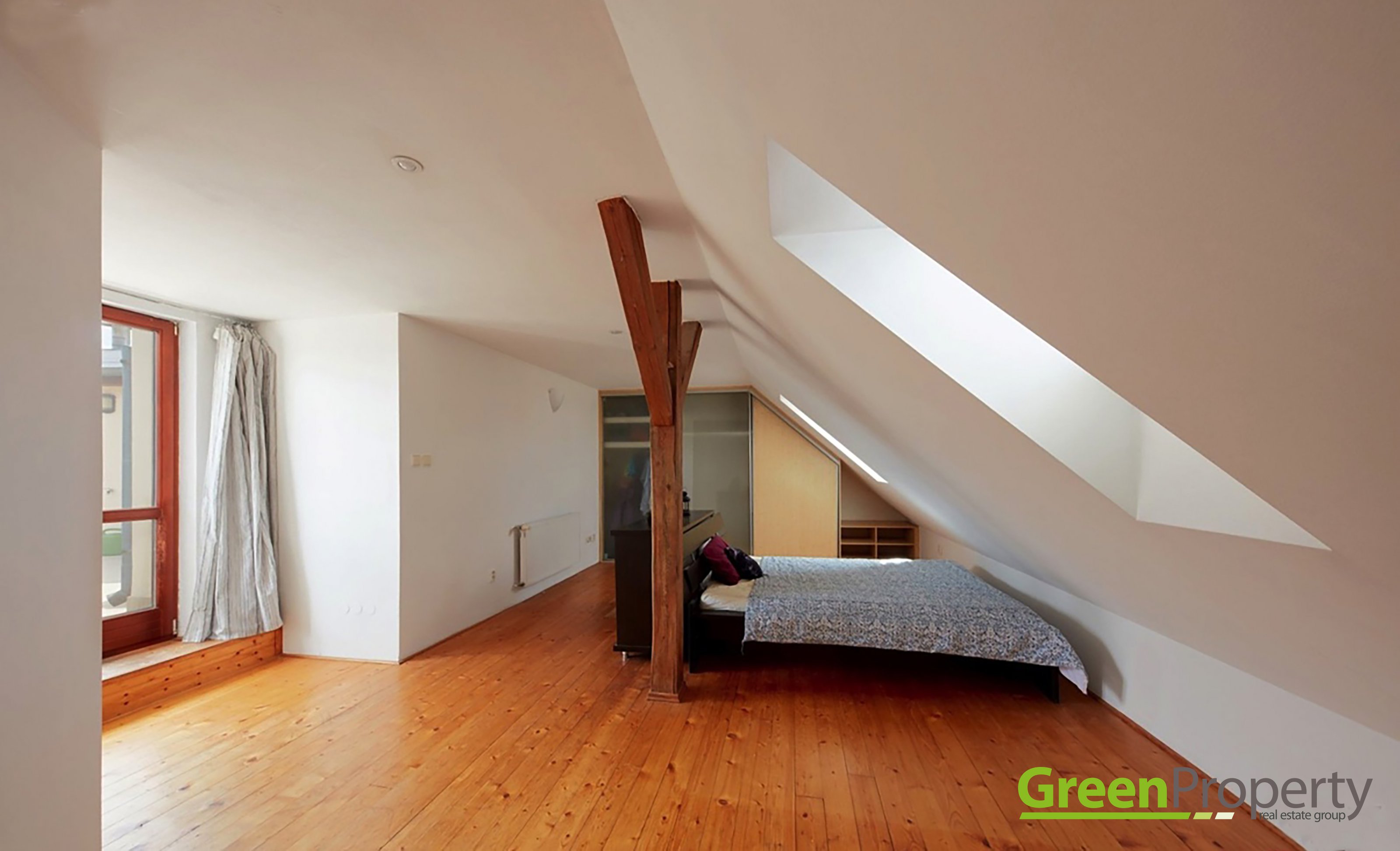 Nabízíme k pronájmu prostorný a světlý mezonetový byt typu 4kk o výměře 210 m2 umístěný v posledním patře (6.) činžovního domu s výtahem v Praze 4, Nusle, Mojmírova ulice. Byt nabízí ve spodním patře obývací pokoj s kuchyňským koutem vybavným kuchyňskou linkou včetně spotřebičů, pokoj, koupelnu, komoru a balkón o výměře 4,5 m2, v horním patře pak 2 pokoje, koupelnu a prostornou terasu o výměře 19 m2. K bytu náleží sklep. Vytápění je ústřední plynové, zálohy na domovní služby jsou už obsaženy v nájmu, elekřina, plyn (cca 2000 Kč měsíčně) + inernet se hradí přímo dodavateli služby. Kauce je ve výši 49 000 Kč. Byt je možno pronajmout od 1.2.1026. Budova se nachází v klidné části Prahy 4 Nusle, tato historická lokalita je oblíbená jak divadly, tak kavárnami a restauracemi. Nedaleko jsou dětská hřiště, park Fidlovačka či Jezerka. Výborná dopravní dostupnost je zajištěna díky blízkým stanicím tramvají a autobusu.